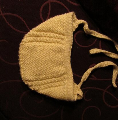 This bonnet is my version of the one worn by the new princess born on the 2nd May 2015 to The Duke and Duchess of Cambridge. This pattern is “reverse engineered” from photographs and is just my own take on what can be seen (the lower hem is my own invention, it not being visible in the pics). I am not the designer of this pattern, nor did I knit the original bonnet worn by the princess. I don’t claim that my version is correct – it’s just what I saw.