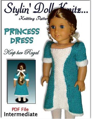 Pdf doll knitting pattern, fits American girl and 18 inch dolls. Princess Dress. Free shipping through e-mail. (Gotz, Maplelea Girl, AG)