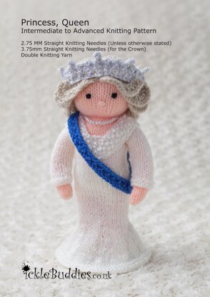 The Princess/Queen looks very regal in her Royal outfit with a Cream Sparkly dress and Blue sash. Her Blonde Knitted hair, White/Silver Crown and Pearl beads completes her look.