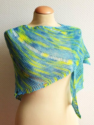 Prinses is a simple yet stylish triangular shawl knit sideways in garter stitch on the bias. A great way to let that lovely variegated hand dyed yarn shine! With its construction in sections and flexible sizing, it’s perfect for making the most of the amount of available yarn. You can also use a different yarn for every section to stash bust some odds and ends of fingering weight yarn.