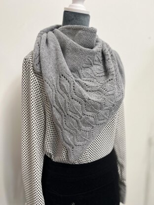 The Priscilla shawl is asymmetrical triangle shaped.