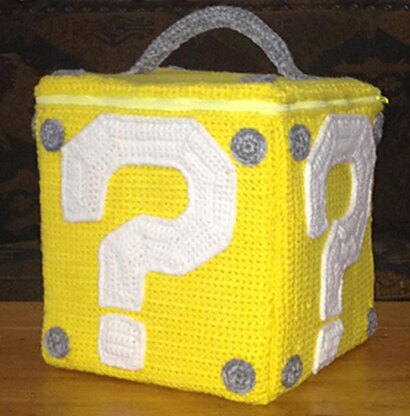 Using a finer/thicker yarn and smaller/larger hook will result in a smaller/larger question mark and bolt heads.