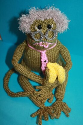 Meet Professor Monkog! This quirky capuchin monkey was designed after I watched a documentary of the species on the tv. At the same time the school session was letting out for the year-end and I knew that many teachers and professors would be hard at work marking exam papers. With this in mind a new pattern was created. He is sitting in his study green with envy that his students get to play in the sun while he is stuck in his office marking papers.. and with his stomach growling he is angry.. all he has to eat are two over ripe banana..what is a guy to do but scowl and carry on.
