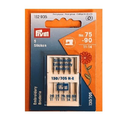 Prym Machine Embroidery Needles\nPack of 5 needles\nNo 75-90 /11-14