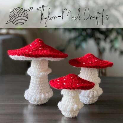 Full crochet along video included for the large, most complex mushroom of the three.