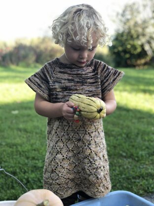 This garment is knit top down and mostly in the round and has a raglan construction, making it easy to slip on your little to test for size. The original design has short sleeves, but can be easily adapted to have any sleeve length desired. beginning as one might begin a top down raglan cardigan, then joining in the round to create an eyelet in the back that is fastened with a single button.