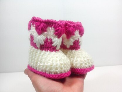 Crochet Pattern Baby Booties Puff Aloe Stitch. The finished product is not included.