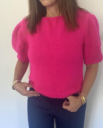 This design has a great simple shape with the added puff sleeve to make it the perfect addition to your wardrobe this season! It is a comfy and simple knit with a worsted weight yarn. Knit with a US#11 needle it is a great weight to wear in every season. You can easily make this sweater a crop top or even extend the length to make it longer.