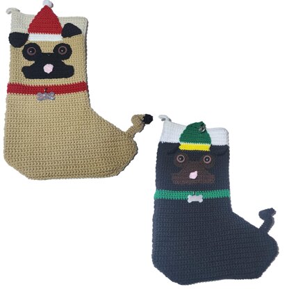 Introducing the Pug Christmas Stocking Crochet Pattern – the perfect addition to your holiday decorations for all pug lovers and their furry friends!