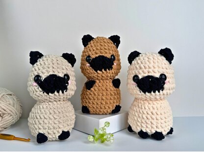 This bundle contains 3 complete pug dog crochet patterns:
