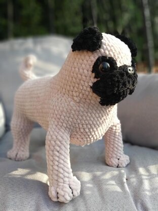 Standing Pug dog crochet pattern PDF in English, Deutsche