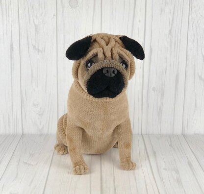 Pug dog crochet pattern PDF. English USA.