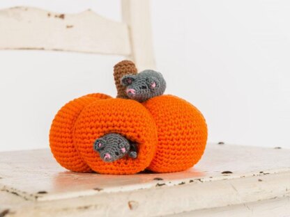 Crochet pattern for a pumpkin and 2 cute little mice.