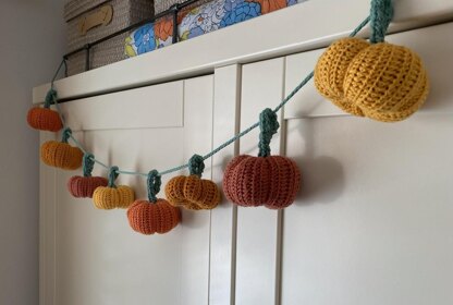 A crochet pattern for a rustic, autumnal pumpkin garland, perfect for Autumnal home décor. This pattern creates a 3D pumpkin garland, or if you wish, individual 3D pumpkins for home décor. Instructions are given to make a pumpkin measuring approx. 6cm high & 8cm diameter, with notes on how to adjust to create pumpkins in assorted sizes. Pattern includes: Crochet pumpkins and garland.