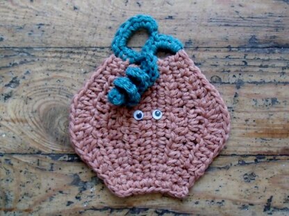 This pattern is for a novelty wall hanging. It's basically a little something to use up the leftovers and amuse the children - a little cotton pumpkin hanger with googly eyes.