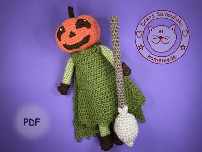 With yarn length 150m/50g this doll is about 30 cm high.
