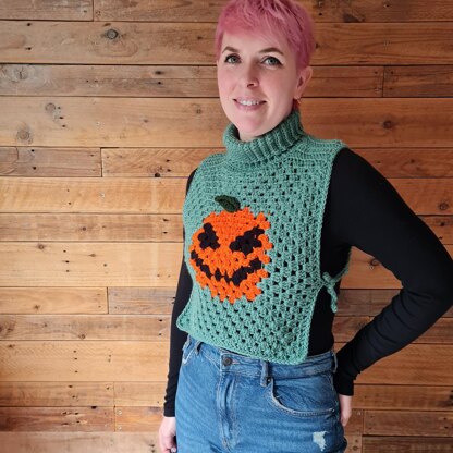 Whether you wear yours as a warming vest over a shirt, or peeking out from beneath your winter coat, you can feel cosy and creepy in your seasonal crochet cover-up.
