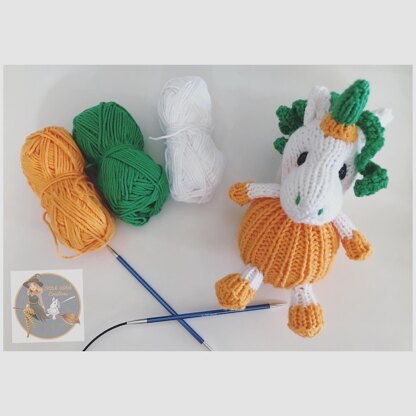 This 8 page written knitted pattern is in English only and includes detailed instructions along with photos to guide you through the pattern - including how to construct your Pumpkin unicorn when you have finished knitting each piece of the pattern :)