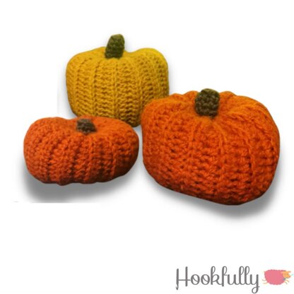 This crochet pattern will help you create crochet pumpkins in 2 different sizes. You can make as little it as many as you like, I chose to make 3 to create a little display ready for Halloween. The small pumpkin measures 6cm tall by 10cm wide, the medium crochet pumpkin is a little larger and measures 8cm tall by 11cm wide.