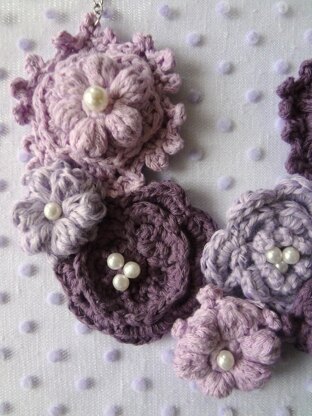 What you need: * sport cotton yarn and 1.9 mm hook. Please consult hook recommendation on your yarn label. * metal chain, jump rings *sewing needle and thread * (optional : pearls, glass beads, rhinestones) Used terms in American terminology: chain (ch), single crochet (sc), half double crochet (hdc), double crochet (dc), back post single crochet (BPsc), 4-ch picot.