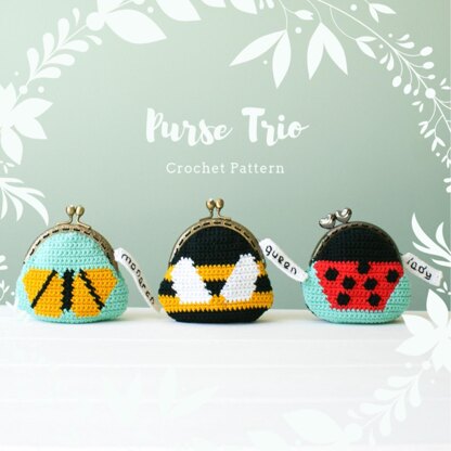 Inspired by garden life these purses are quick and easy to make using intarsia crochet to create the color detail for the monarch butterfly, queen bee and ladybug purses. The pattern includes written instructions on how to crochet the purse, full color charts to make the purse fronts and a photograph tutorial to show you how to sew the purse to the frame.