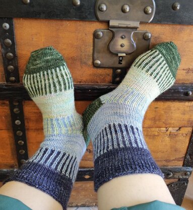 You will need 4 colours. Choose highly contrasting colours to have fun socks, or softer shades to have a sort of gradient socks. The pattern gives the measures of each colour section depending on your shoe size.