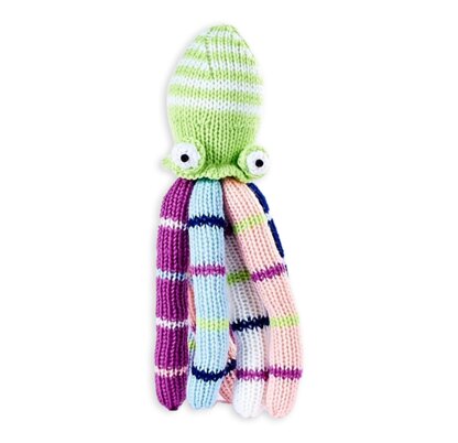 Practice knitting stripes with colourful Quentin the Octopus. Designed by Amanda Berry @fluffandfuzz, this toy is knitted in acrylic DK yarns on single pointed needles (not in the round). For confident beginners and above, other techniques used include casting on and off, knits, purls, increases and decreases, and seaming to finish.