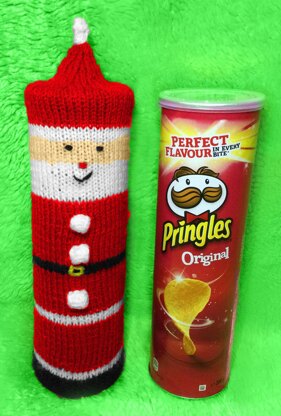 This gorgeous Quick Knit Christmas Santa cover can be used to go over a tube of Pringles.