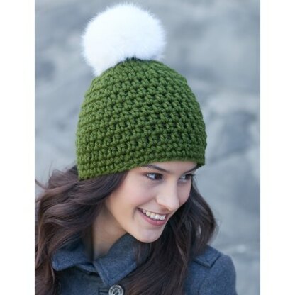 Quick Pompom Hat in Bernat Softee Chunky and Faux Fur Pompom - Downloadable PDF
