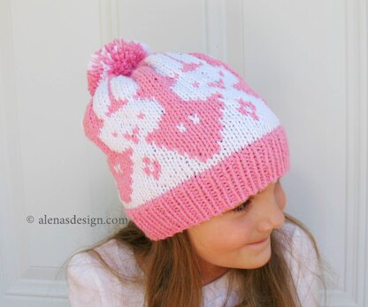 This Pom Pom Hat features a Rabbit pattern in sizes to fit Baby to Adult.