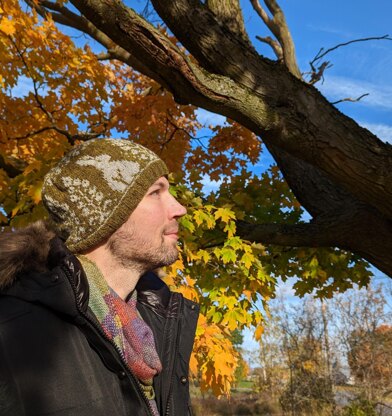 This is a pattern for a slouchy beanie worked from the bottom up, in the round, and using the stranded colourwork technique.