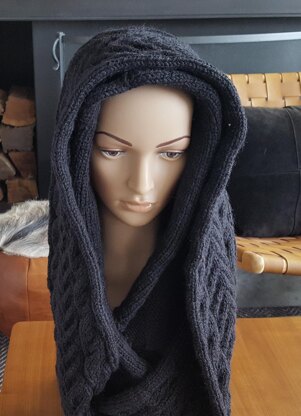 This 12ply hooded cable Cowl is sure to keep you warm and snug all through winter and keep those chilly winds at bay. The Cowl is worked in a striking but simple cable pattern and the Hood is worked in easy reverse stocking st. It can be worn in a variety of ways – wrap the Cowl twice for extra warmth or leave it open to form a hooded scarf style.