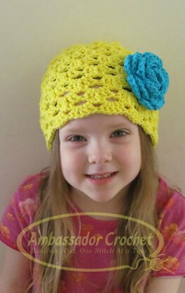 This hat remind me of rays of sunshine. It is so bright and cheerful. My daughter's middle name is Rae, so I named it Rae of Sunshine after her. Made with cotton, this makes a great spring hat!