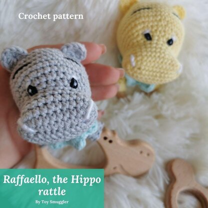 Crochet Amigurumi pattern to a rattle toy, Raffaello the Hippo.