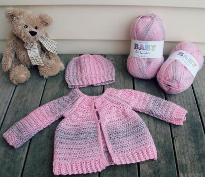 This adorable raglan-style baby sweater is sweet and classic.
