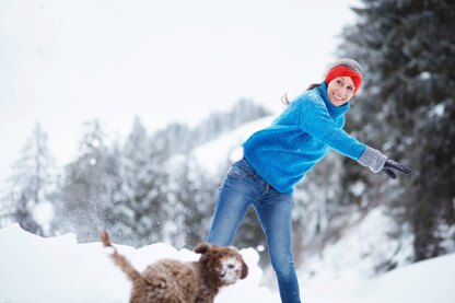 Dieser Pullover ist ebenfalls eine perfekte Grundlage, um mit Mustern wie Zöpfen oder Streifen zu arbeiten.