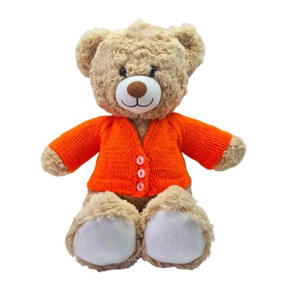 I created this pattern for my grand daughter's 18 inch (46cm) build a bear named Maddy. I have since made many more for birthdays and christmas's for her little friends. I suspect the "grown ups" have actually wanted them, if truth be told!! When I was trying to find a pattern with the raglan sleeve that I desired, I had no luck. So now I would like others to be able to knit a raglan sleeve jacket/cardigan for their grand children's bears. I have included lots of technique photos too.