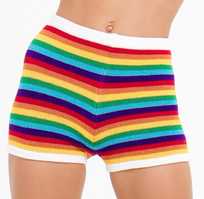 This rainbow stripe shorts knitting pattern designed to hug your curves in all the right places. It is based on the clothing brand Knitty Kitty. Playful pieces that are fun to knit and sexy to wear.