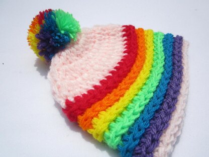 The Rainbow Cloud Hat is an easy to work colourful preemie hat. The hat has a lot of stretch to accommodate baby's delicate skin.