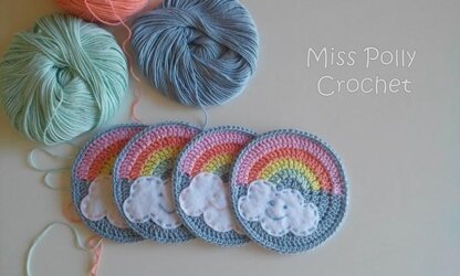 A fun and easy pattern to make four cute rainbow coasters, to brighten up any winter day! Ideal for using up oddments of yarn, as only small amounts in each colour are required. The coasters are made using mainly treble crochet stitches, worked in rounds with simple colour changes, finished with a felt cloud applique and backing.