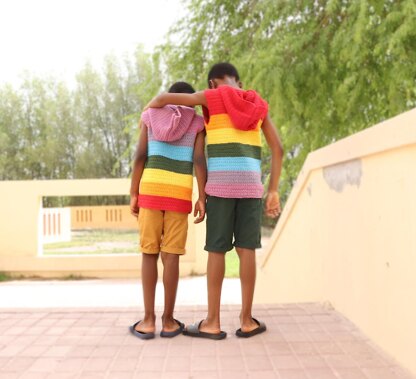Add colour to your crochet project with this Rainbow Hoodie top for boys. The pattern is written for five sizes from 12 months to 10 years. It uses the Half Double Crochet stitch all through, and is trimmed with the Single Crochet stitch. Be sure to also follow the video tutorial on Yarn Craftee Youtbe channel.