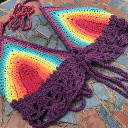 It is stretchy and adjustable in front, top and back. The cup size would comfortably fit from 32A/B (or smaller) up to 40-42C. For D cups, I recommend continuing outer rows in the same color as last row, or increasing the first chain by 2 (keep odd number – 11, 13, 15, 17, etc.)