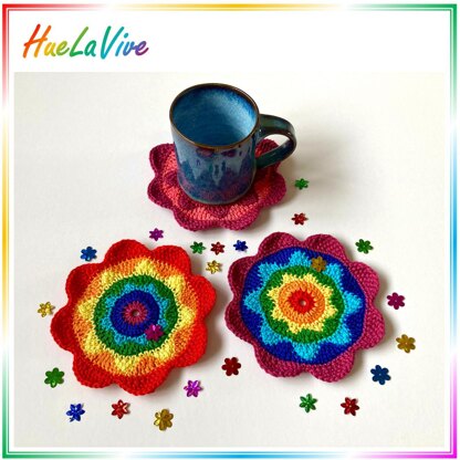These rainbow flower coasters will light-up your coffee or dining table; or make a delightful gift for someone special !!!