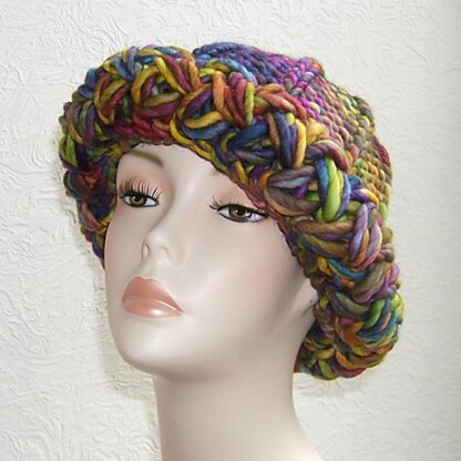 Rainbow hat with Flame Stitch Trim