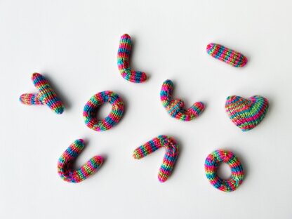 GAUGE Gauge is not crucial for this project, but you should work tight enough to make sure that the letter is shaped well, and to avoid holes. Choose needles 2-3 mm smaller than the size recommended on the yarn label.