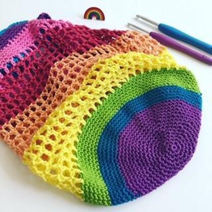 I wanted to make a bag for which I'd use all the yarn I'd bought for it. So no leftovers. (No waste.) I used 9 balls of Scheepjes Catona 10 gr for it and used them completely. So the colour changes might seem random haha. Alternatively you could use leftovers to make this bag and maybe create a rainbow pattern too.