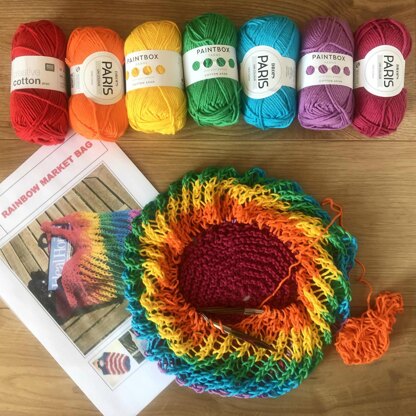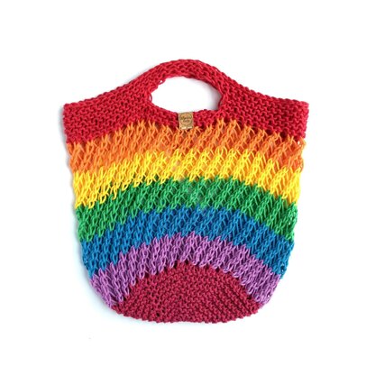 Knit yourself a bright but practical net market bag in vibrant rainbow colours. Use it for shopping or for toy storage or for picnics or trips to the beach. Wherever you use it, it's bound to make people smile!