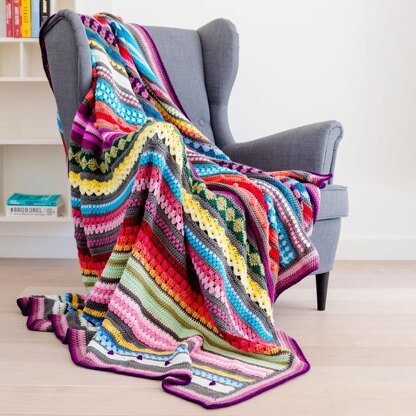The Rainbow Sampler Blanket is as colourful as it is exciting! With over 13 different stitch types, this sampler blanket is perfect for the ambitious beginner who wants to learn new stitches and create a rainbow blanket in the process.