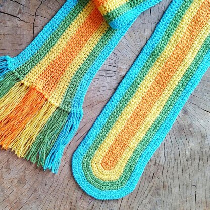 Very easy, beginner friendly crochet pattern of a rainbow scarf. On gloomy, windy days, whether it’s autumn, spring, winter or… summer, treat yourself with this bright accessory: a scarf, long enough to keep you warm and colorful enough to make you smile.