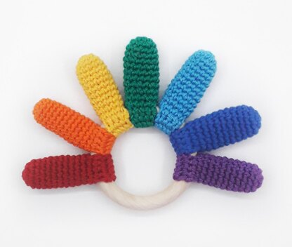 Yarn cotton 100% good twist-218 yds240m / 50gr- red 20 yards , orange 20 yards, yellow 20yards, green 20 yards , light blue 20 yards, blue 20 yards, purple colors 20 yards. Crochet from a thread of 2 addition When crocheting from the recommended yarn, the rattle turns out to be 15 cm/6 inches